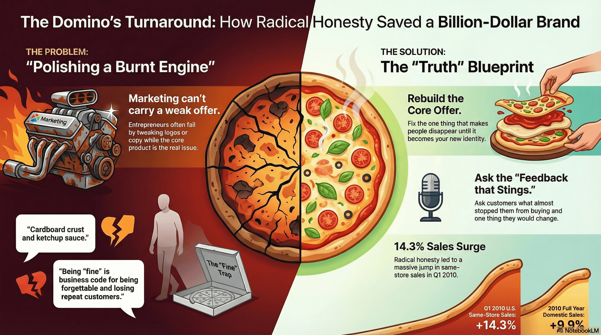 “Cardboard crust.” “Ketchup sauce.” People weren’t reviewing Domino’s— they were warning their friends. And Domino’s did what most businesses never have the guts to do: